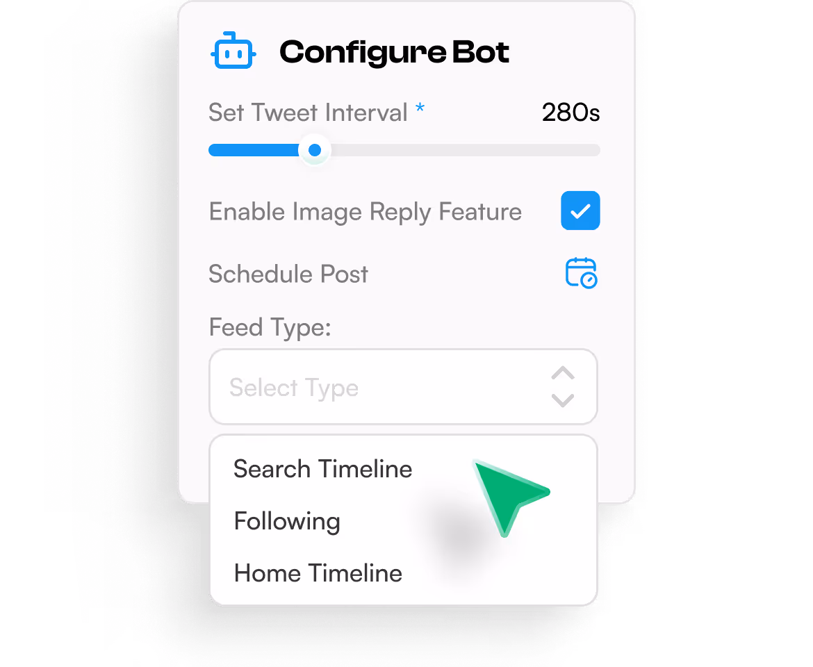 Our AI tool identifies Tweets in your feed and posts viral replies that get attention, thus attracting followers who actually care about your content.