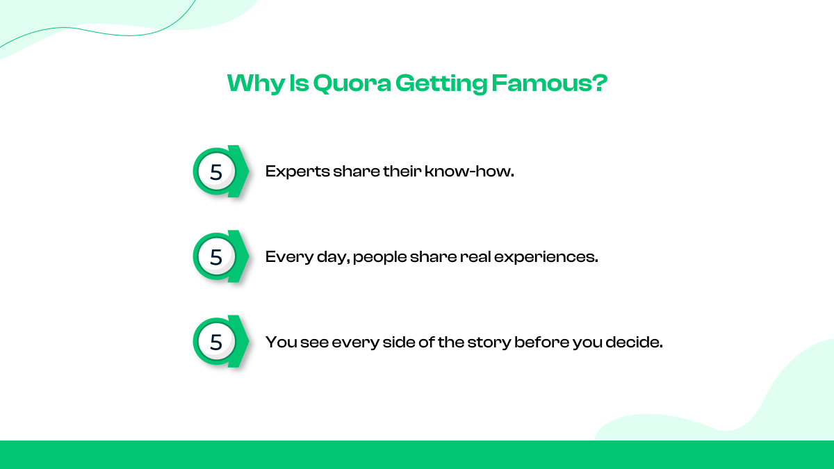 Unlike social posts that disappear in a day, a single Quora answer can keep bringing views, leads, and authority for months, or even years.
