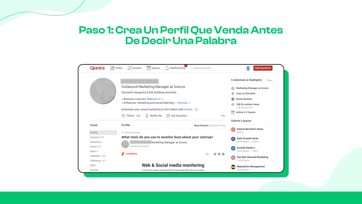 Quora no se centra solo en los clientes. También es el lugar donde puedes conectarte con personas influyentes, colaboradores y tomadores de decisiones de tu industria. Una respuesta bien pensada puede iniciar una conversación que conduzca a un acuerdo B2B.
