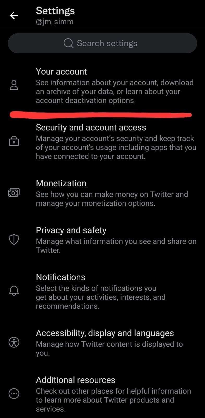 - A partir daí, a configuração principal é seu nome de usuário. Clique nele e altere seu nome de usuário para o que você quiser que seja o novo nome.
