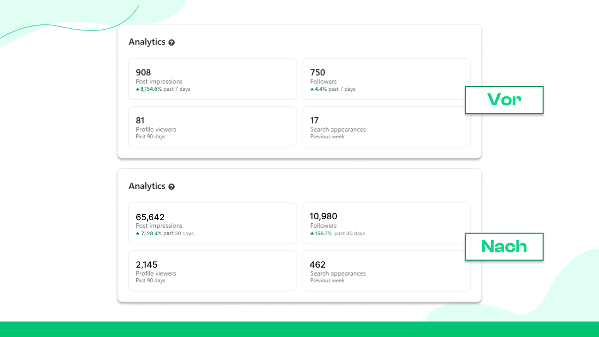 Nosso primeiro passo foi aumentar a visibilidade da equipe de liderança. O Social Plug foi entregue Crescimento de seguidores no LinkedIn para os principais perfis de funcionários, criando a camada inicial de prova social.