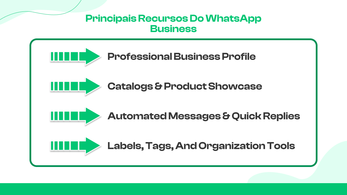 As empresas não usam o WhatsApp Business apenas para se divertir; a plataforma oferece uma infinidade de recursos incríveis que ajudam as empresas a prosperar em relação ao engajamento do cliente e à visibilidade da marca. Vamos dar uma olhada nos principais recursos do WhatsApp Business-